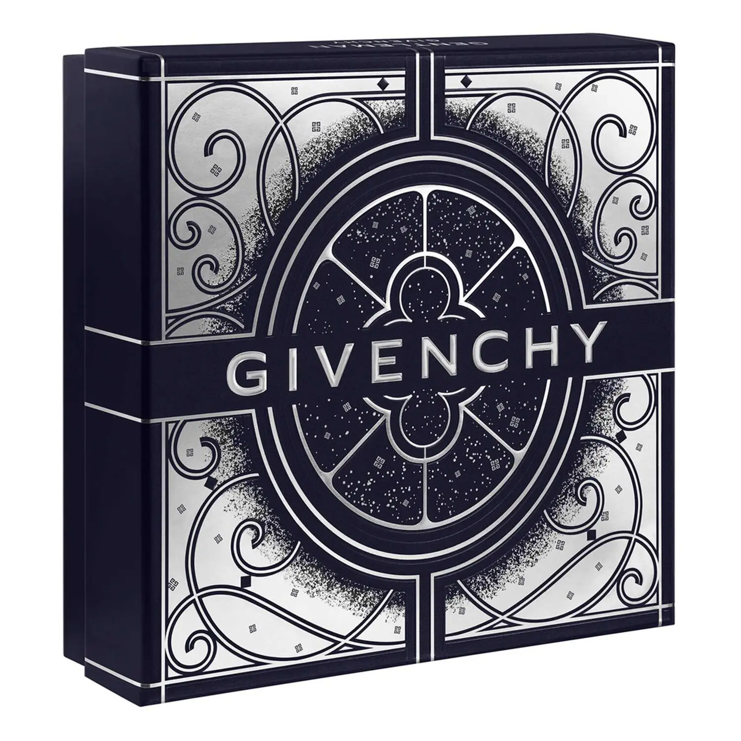Le coffret extérieur, orné du logo Givenchy sur un motif graphique noir et argent, donne immédiatement une impression de cadeau premium.
